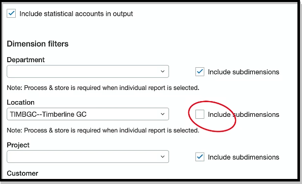 The IncludeChildDimensionBalances argument performs similarly to the Includesubdimensions checkbox in Sage Intacct's stock reports such as Account Balances: